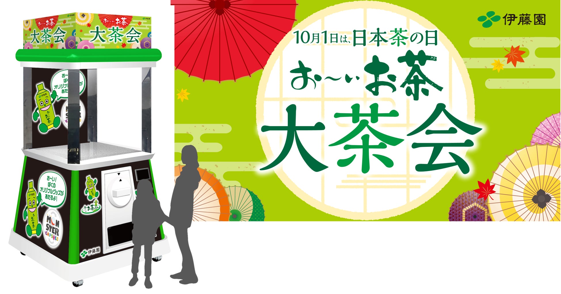 「日本茶の日 お~いお茶大茶会」を、10月1日(日)に全国47都道府県にある約400店舗で開催。メイン会場の「イオンモール幕張新都心」に、高さ3メートルの巨大ガチャが登場します