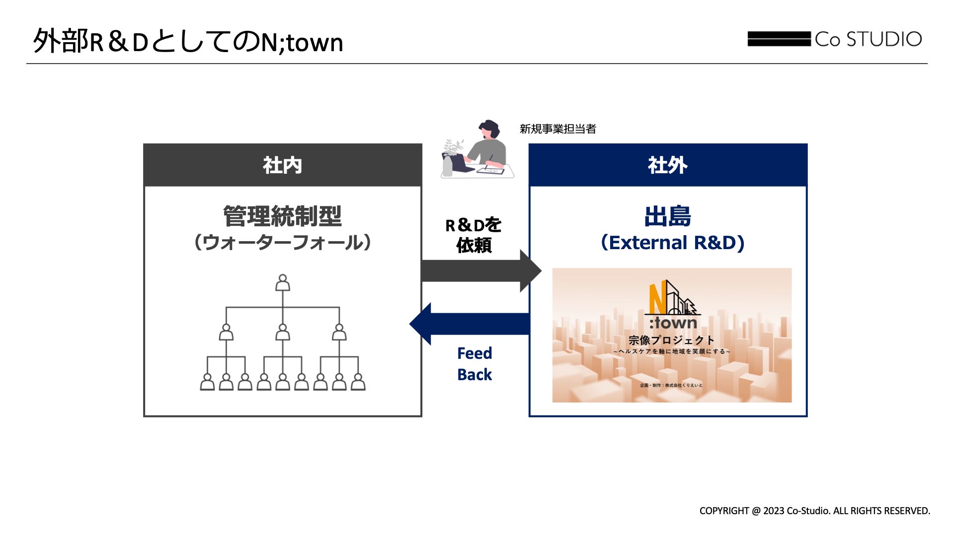 加えてCo-Studioでは「N;town」を宗像市のみならず、沖縄県浦添市など他の都市にも展開予定で、クライアント企業の事業開発拠点を日本各地に増やしていきます。これによって、宗像市をはじめとした地域の社会課題解決と、企業の新規事業開発の双方を加速させてまいります。