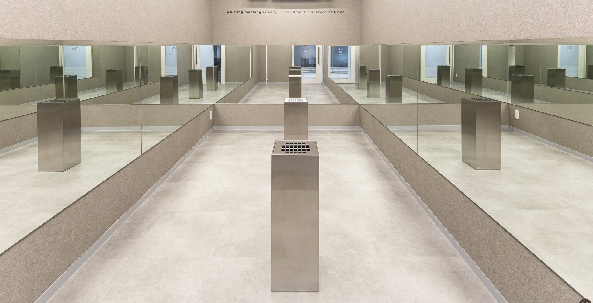 「THE TOBACCO TSURUMAI」は、国内最大規模のオープンイノベーション拠点にふさわしい、落ち着きや遊び心を持った喫煙所です。施設内に3箇所ある「THE TOBACCO」は、それぞれテーマが異なり、自然音のBGMが流れる夜の森をイメージした「瞑想の部屋」、様々な音楽を選びながら楽しむことができる「聴覚の部屋」、まるで無限に空間が広がるような「視覚の部屋」というテーマで、気分に合わせて使える心地よい空間を演出しています。