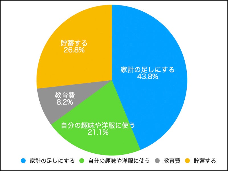 「家計の足しにする」が43%で最も選ばれました。次いで「貯蓄する」が26%となっています。