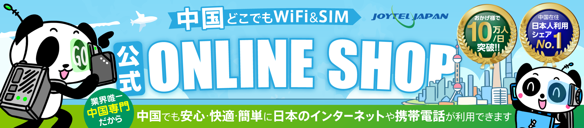 ジョイテル株式会社(本社:東京都千代田区、代表取締役社長:柴田淳)は、中国へ渡航する日本人を支援するため、中国のインターネット環境が日本と同じように快適になるWiFiサービス「中国どこでもWiFiレンタルプラン」や中国の正式な携帯電話番号を日本で受け取れる「中国携帯電話番号SIM」等を提供しています。