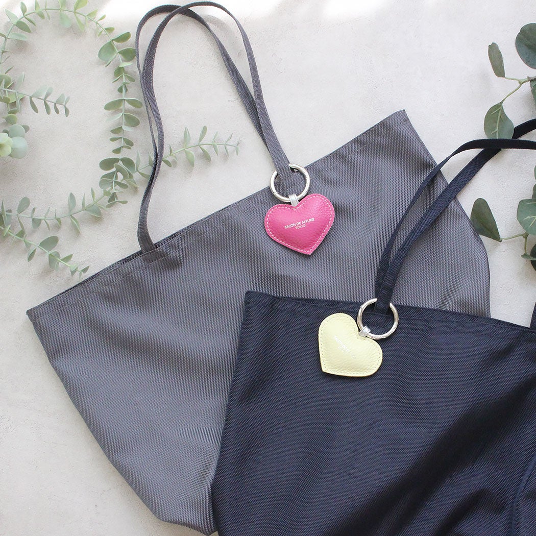 地球にも優しい、100%ペットボトル再生素材で仕立てるエコバッグとハートチャームのセット。