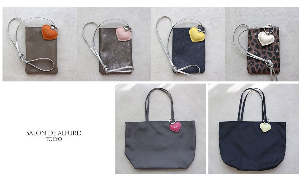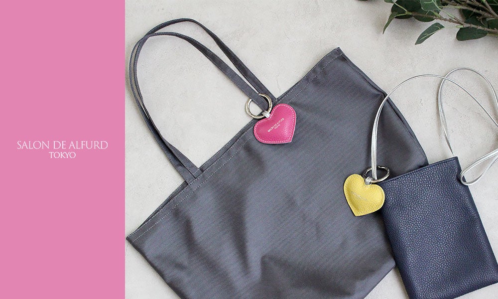 歩くことは心臓をはじめとする身体の健康維持にも有用だそうです。そこで、サロンドアルファードでは、ファッションを通して、健康的な毎日を過ごせるお役に立てればと、お散歩や、お買い物など、歩いてお出掛けするのが楽しくなる、軽いバッグとハートチャームをセットにした特別価格の限定セットを2種類用意しました。
