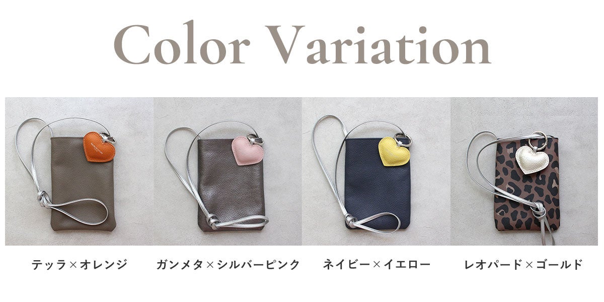 スマホが手放せない毎日にピッタリ、軽くて小さなポシェット&ハートチャームセット。