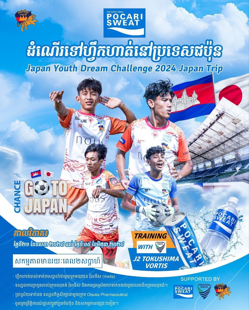 このプロジェクトは、サッカーを通じたカンボジアの青少年育成とグローバルな視野を広げる機会の提供を目的としています。大塚製薬株式会社、Otsuka Nutraceutical (Thailand) Co., Ltd.、徳島ヴォルティスの全面的サポートのもと実施しております。今後もカンボジアの青少年の夢や機会、可能性を広げる機会を継続的に提供していきます。