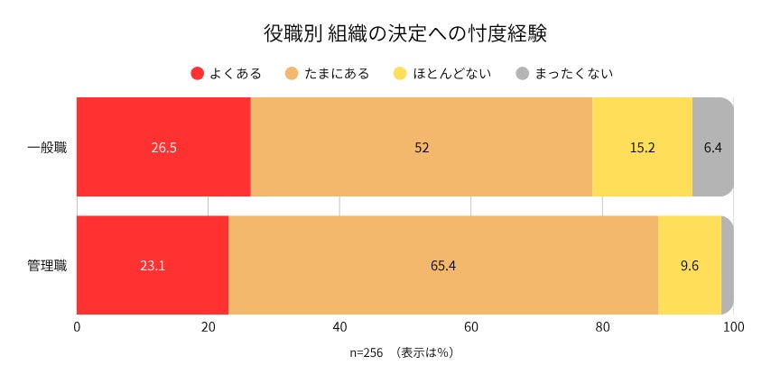 一般職:93.6%、管理職:98.1%が「忖度の経験がある」と回答しており