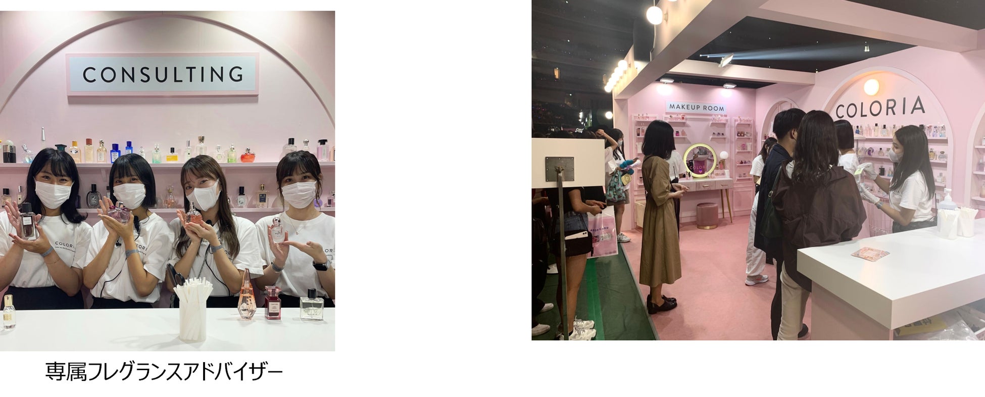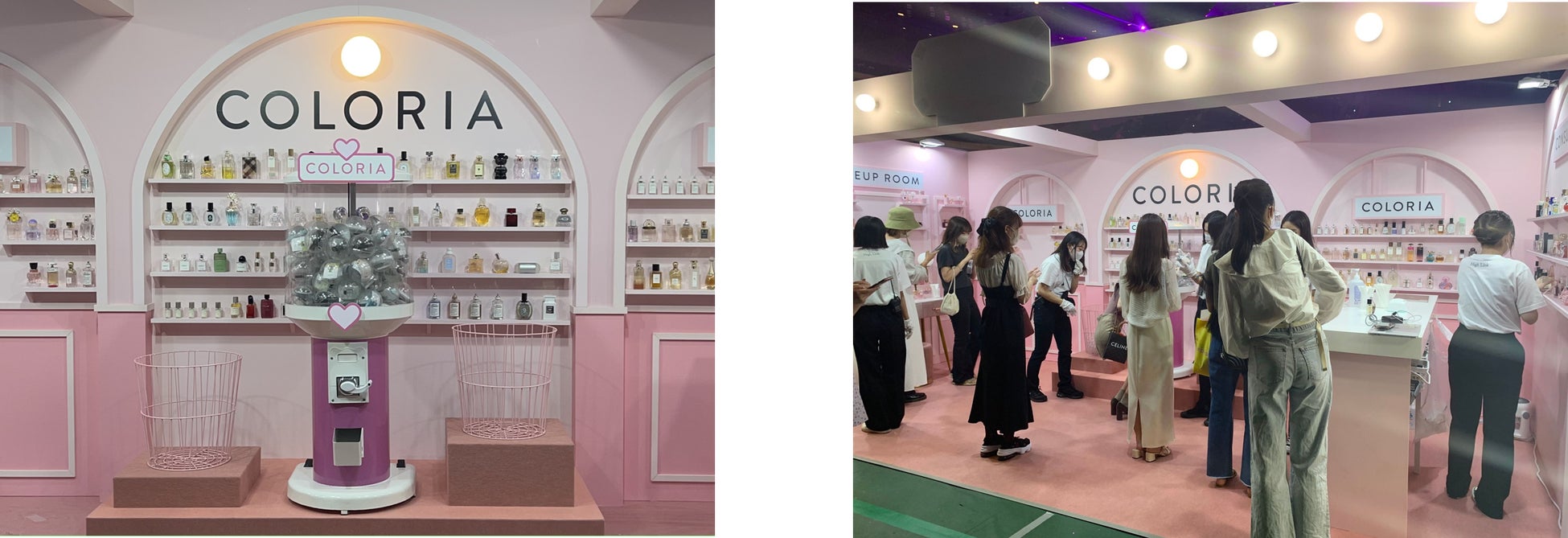 「カラリア」出展ブースでは、カラリアが取り扱っている香水の展示や、まるでドレッサーのようなかわいいフォトスポットをご用意。当日は約1,900名と非常に多くの方にブースにお越しいただき、フォトスポットでの写真撮影や香水ガチャの体験など、新しい香りとの出会いを楽しんでいただきました。