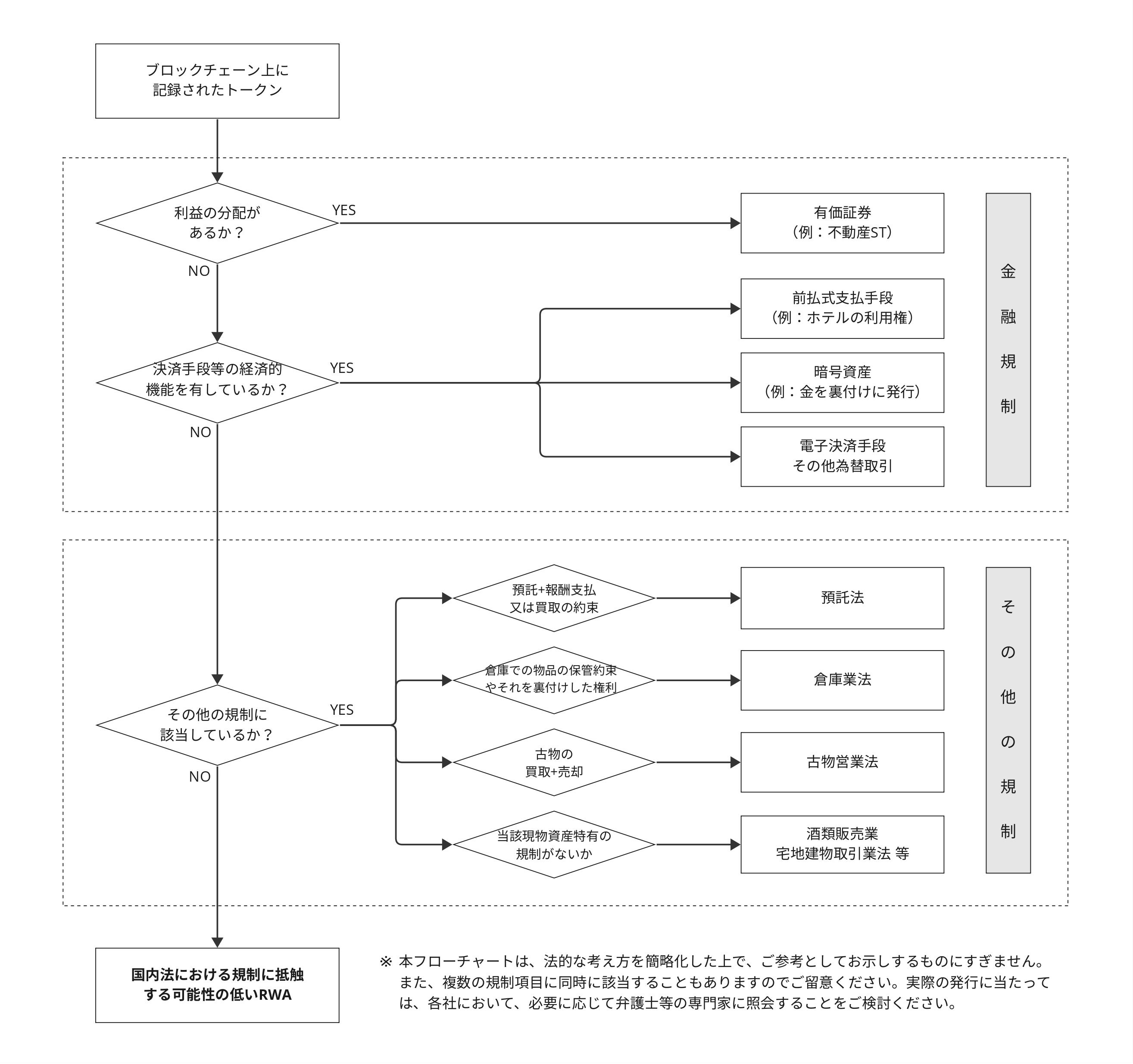 ※本書は、現時点における考え方を一般論的にお示しするものにとどまります。また、本書では特段言及していませんが、特定商取引に関する法律その他消費者保護に関する各種法令等、留意すべき事項は多岐にわたることにも注意が必要です。RWAトークンを実際に発行・販売する際には、必要に応じて弁護士等の専門家に照会することもご検討ください。