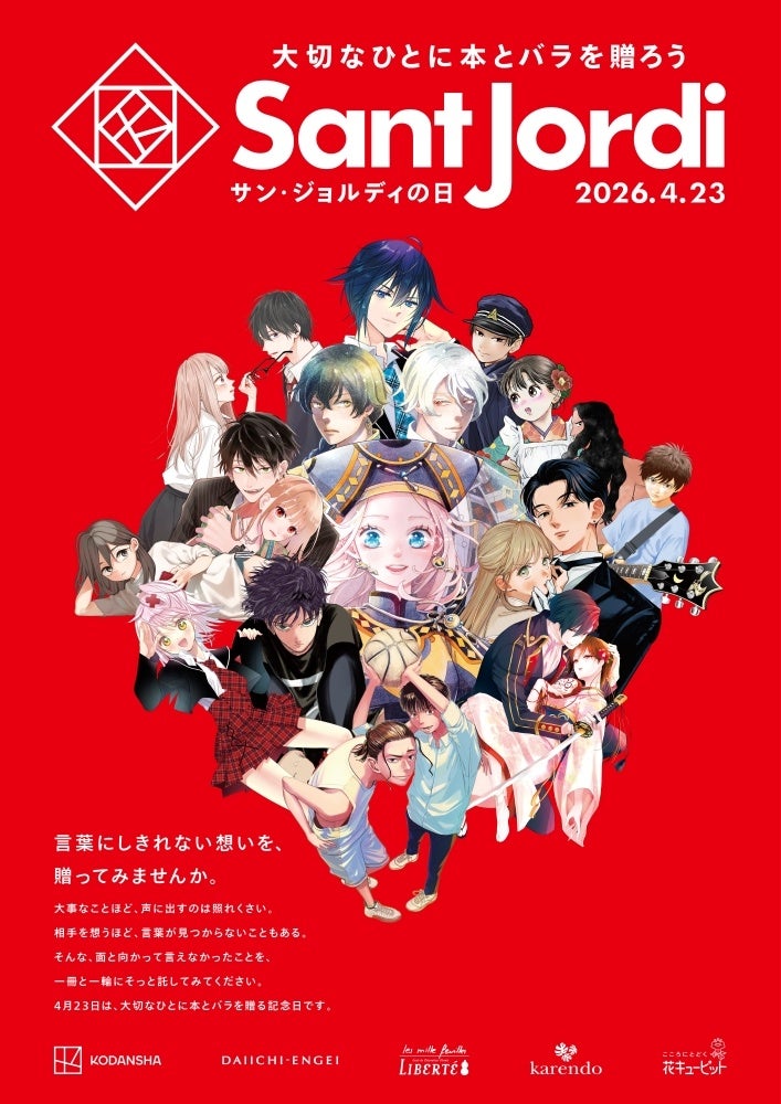一般社団法人 JFTD(所在地:東京都品川区 会長:堀切 実)は、株式会社講談社(本社:東京都文京区、代表取締役社長:野間 省伸)が2026年4月18日(土)より開催する「サン・ジョルディの日キャンペーン 2026」に協力いたします。 期間中、全国の花キューピット加盟店(一部店舗を除く)にてコラボレーションポスターを掲出し、スペイン・カタルーニャ地方発祥の「本とバラを贈り合う」習慣を日本全国へ発信してまいります。