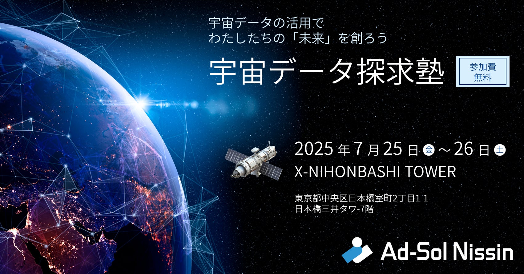 アドソル日進株式会社(本社:東京都港区、代表取締役社長 篠﨑俊明、以下:当社)はこのたび、東京大学大学院工学系研究科 航空宇宙工学専攻 中須賀・船瀬・五十里研究室と共同で、2025年7月25日、26日に体験型プログラム「宇宙データ探求塾」を、東京・日本橋にて開催することといたしましたので、お知らせいたします。