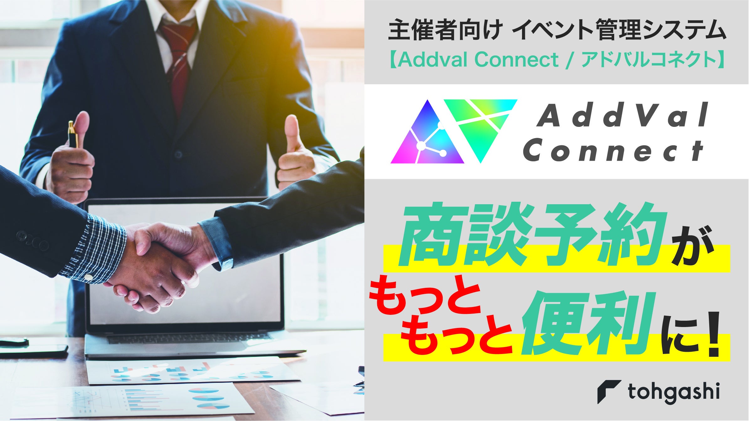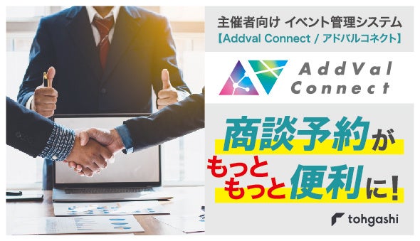 年間約3000件のイベントを手掛ける株式会社トーガシ(本社:東京都江戸川区、代表取締役 吉田守克)は、2月28日(火)に 自社オリジナルの主催者向けイベント管理システム「AddVal Connect/アドバルコネクト」の商談予約機能がアップデートしたことをお知らせいたします。