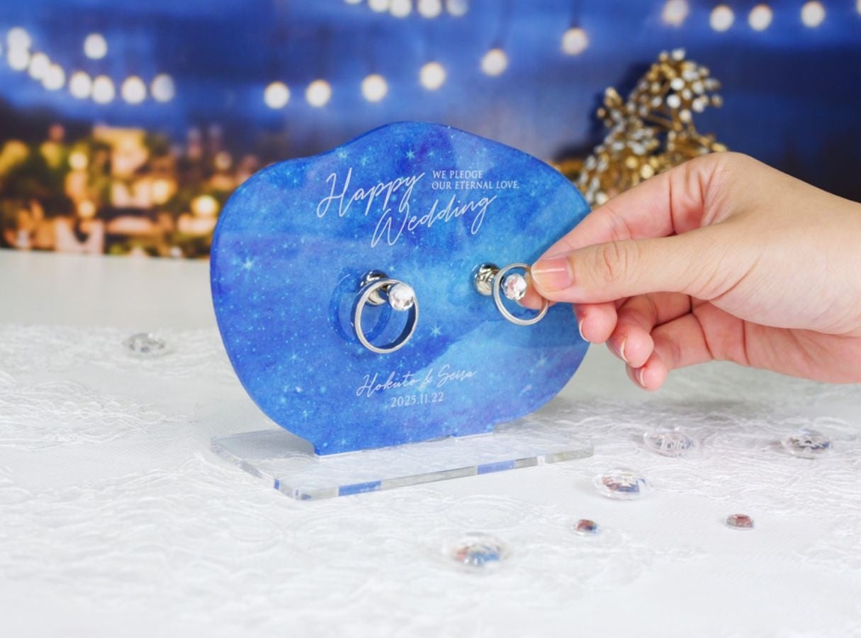 満点の夜空にキラキラと輝く星をイメージしたおしゃれなリングスタンド。ナイトウェディングや星がテーマの結婚式にもぴったり!