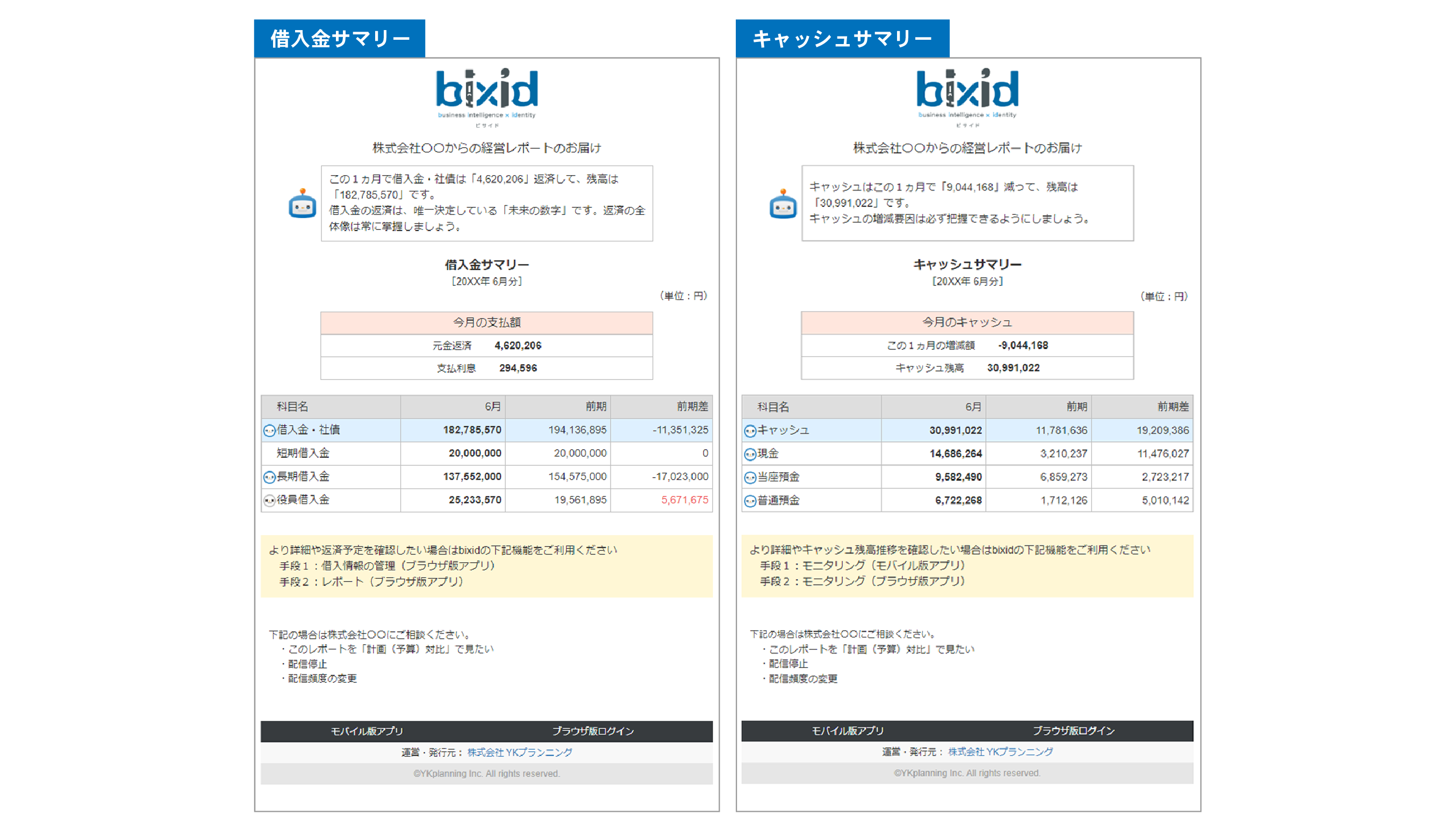 株式会社YKプランニング(本社:山口県防府市、代表取締役社長:岡本辰徳、以下YKプランニング)は、中小企業経営の見える化を実現する経営支援クラウド『bixid(ビサイド)』において有料会計事務所会員向け新機能「経営レポート自動メール」(https://bixid.net/acfirm/index.html)をリリースいたしました。