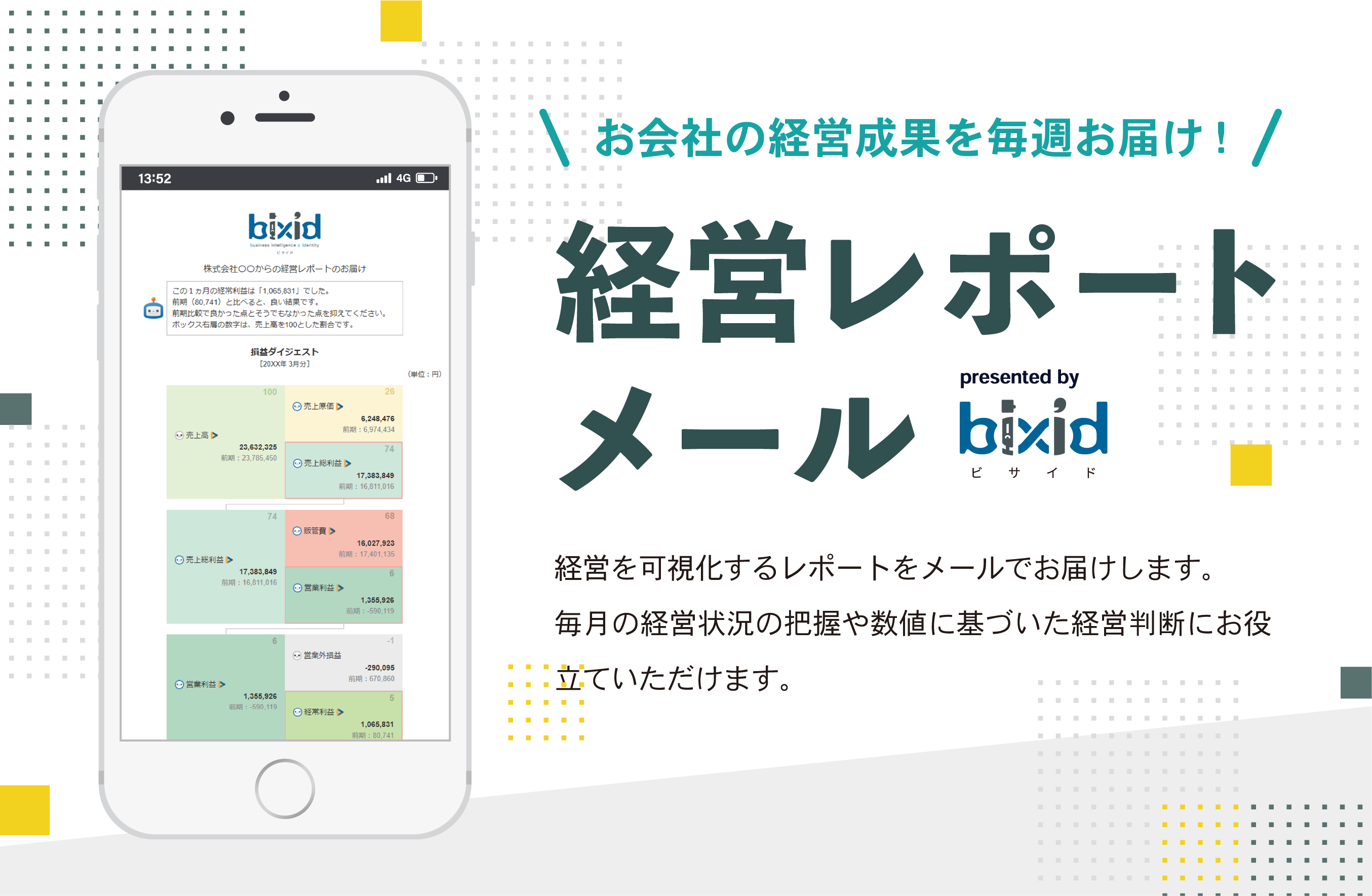 【毎月の作業はたった5分】経営支援クラウド『bixid(ビサイド)』に会計事務所専用サービスの経営レポート自動メールを追加!