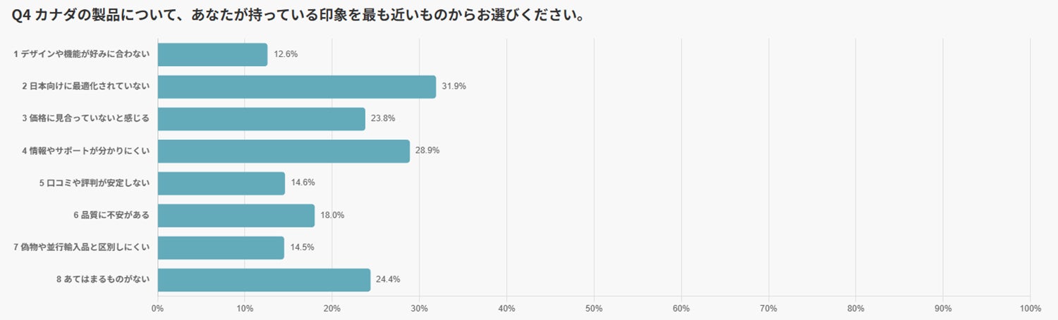 カナダ製品で最も多かった印象は「日本向けに最適化されていない」で31.9%でした。