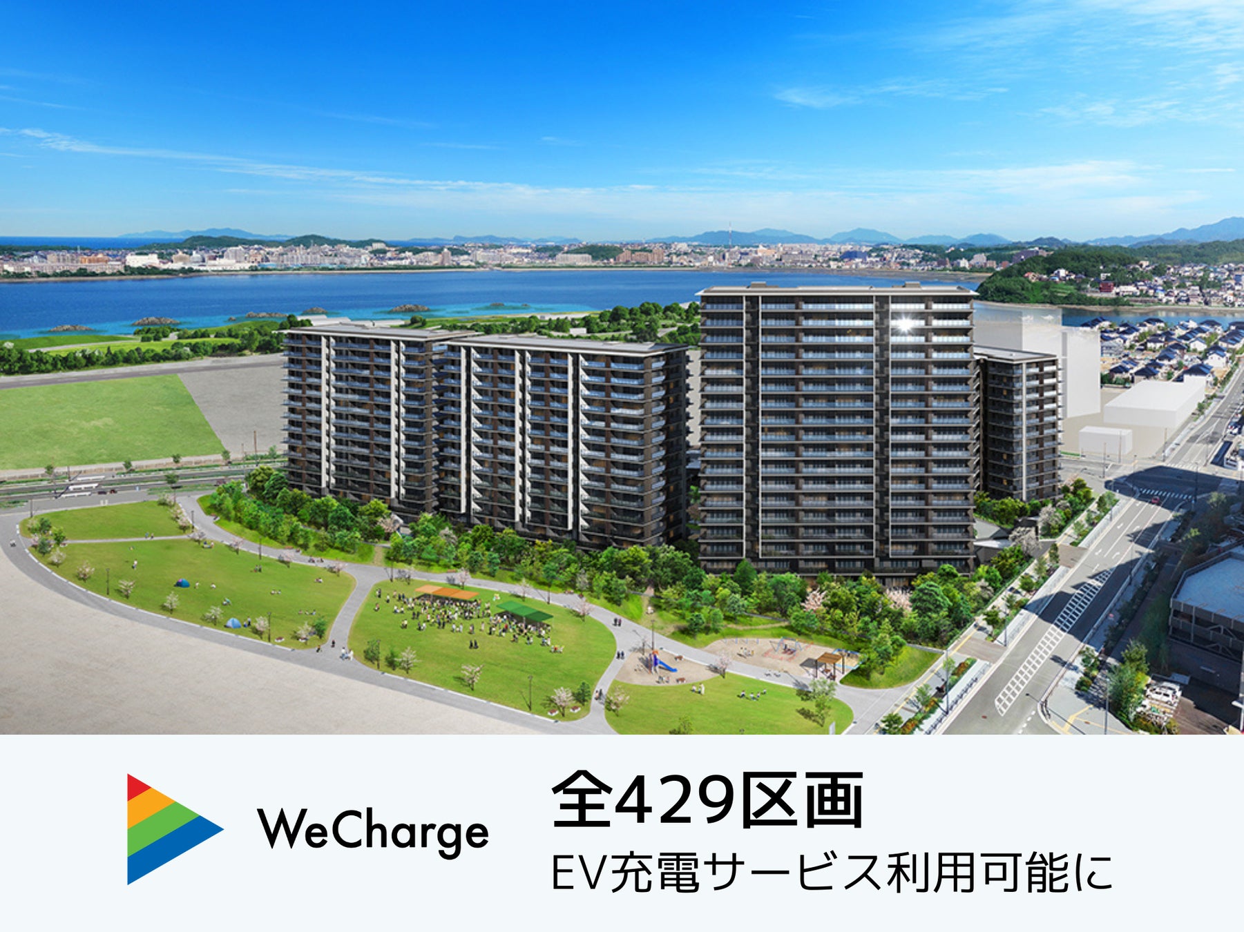 日本最大級の充電インフラが福岡市アイランドシティの既築分譲マンションに登場。駐車棟全429区画でEV充電サービス「WeCharge」が利用可能に