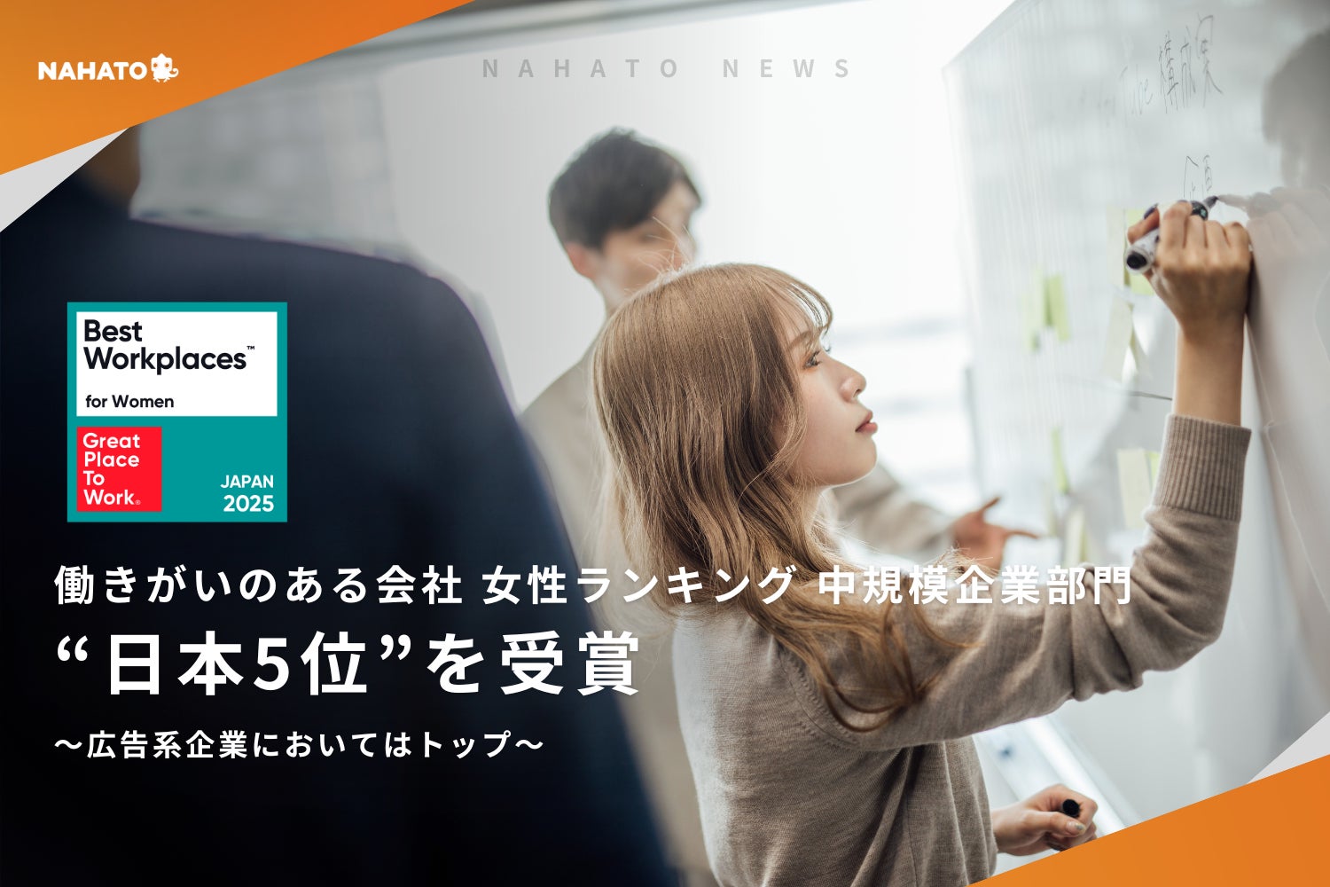 株式会社ナハト(所在地:東京都渋谷区、代表取締役:安達友基、以下ナハト)は、Great Place To Work®Institute Japan(以下GPTW)が主催する女性従業員の働きがいに優れた企業を称える「働きがいのある会社 女性ランキング 中規模企業部門」において、日本5位を受賞したことをお知らせします。(https://hatarakigai.info/ranking/woman/2025.html#anc-02)
