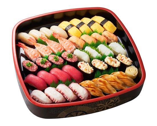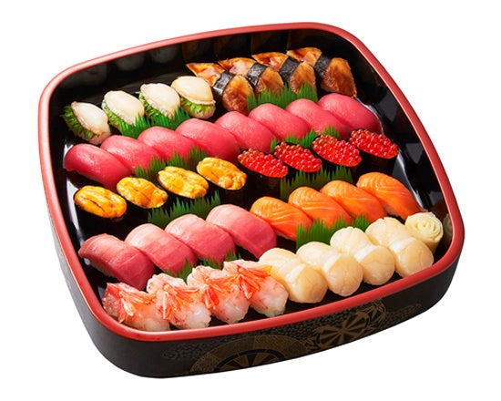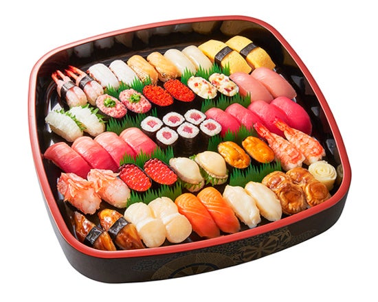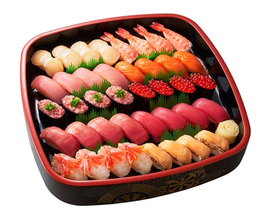 特選素材の“牛肉握り”をはじめ、小僧寿しおすすめネタを彩り豊かに盛り付けました。