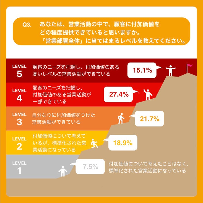自分自身の営業活動における付加価値の提案、47.1%が「レベル3以下」の実態