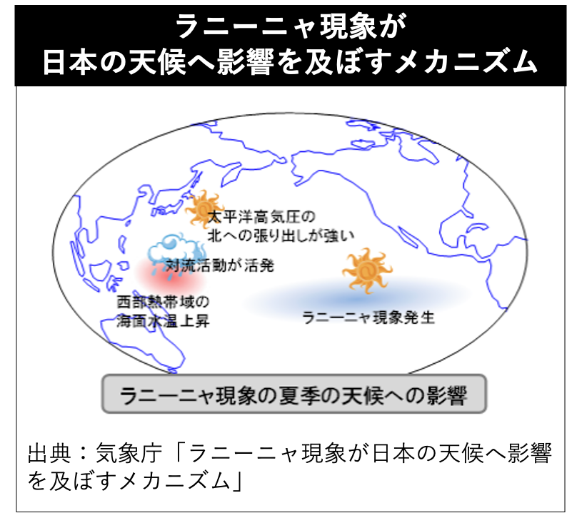 気象庁「ラニーニャ現象が日本の天候へ影響を及ぼすメカニズム」https://www.data.jma.go.jp/cpd/data/elnino/learning/faq/whatiselnino3.html
