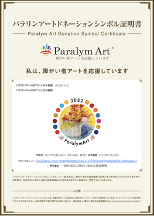 ▲下:購入者特典のパラリンアートドネーション・シンボル証明書 イメージ