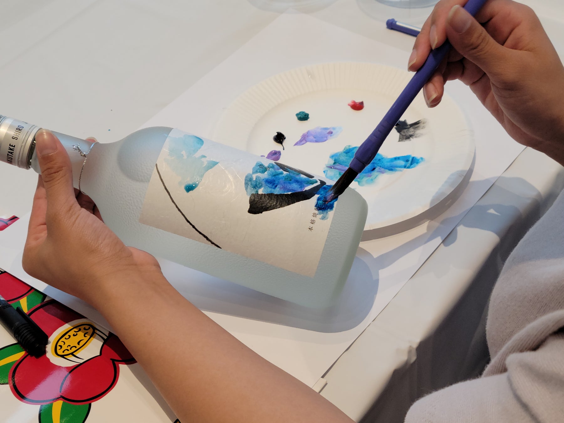 参加費はお一人につき1,000円(税込)で、絵を描いたボトルはお持ち帰りいただけます。(中身も飲むことができます)