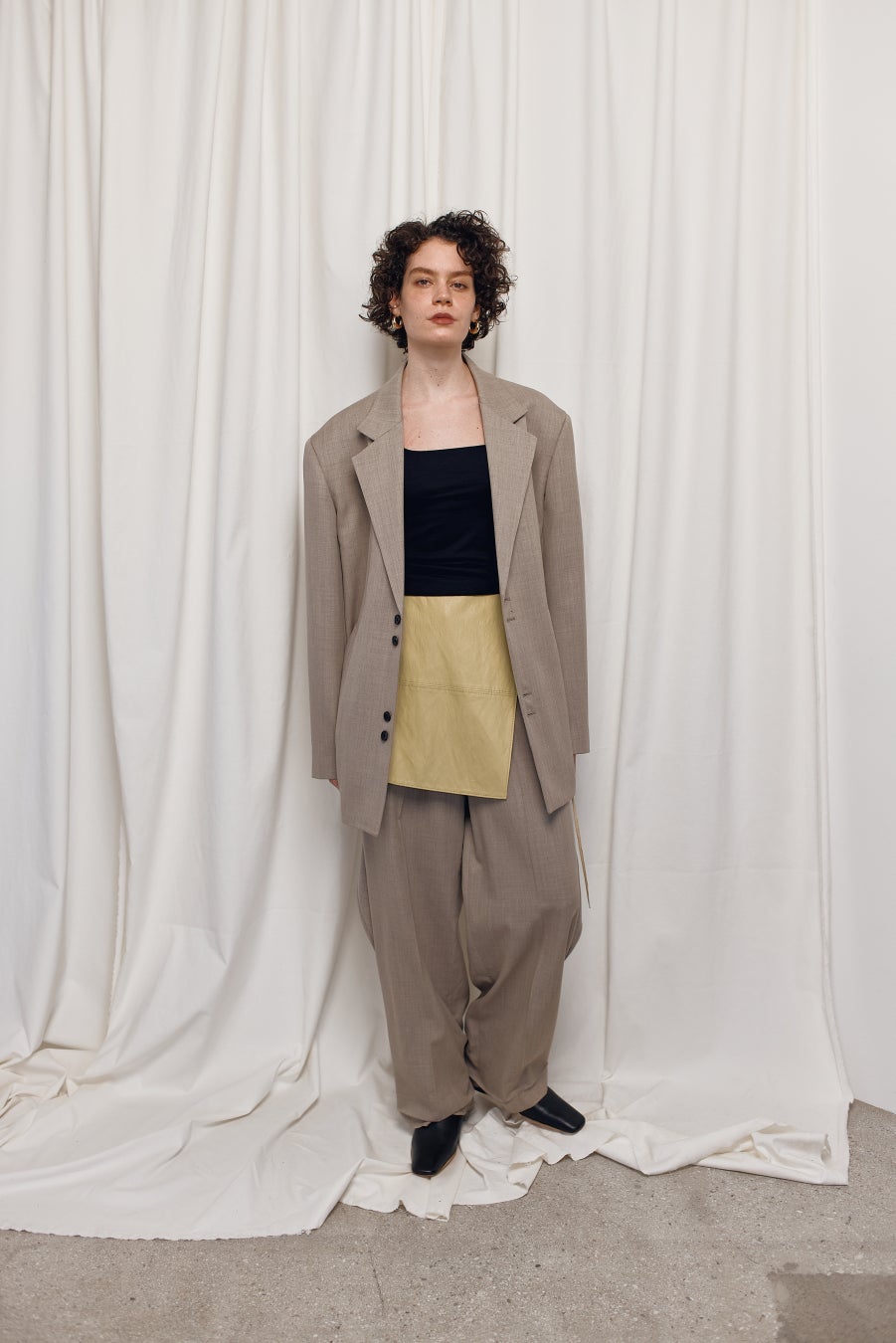 ユニセックスなサイジングを取り入れ、スタイルの固定概念に縛られない自由なバランスを生み出します。