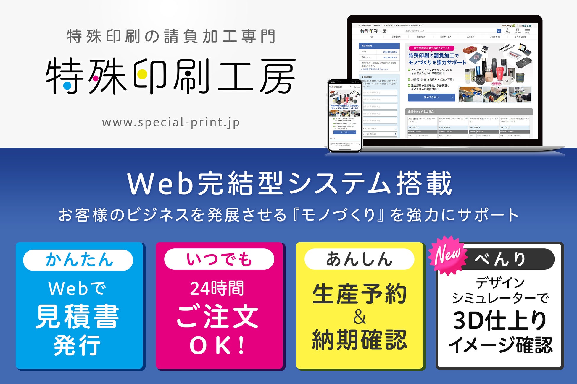 特殊印刷工房は、Webで価格確認・見積書発行・発注ができ、更に納期確認・生産予約が可能なECサイトとなっております。