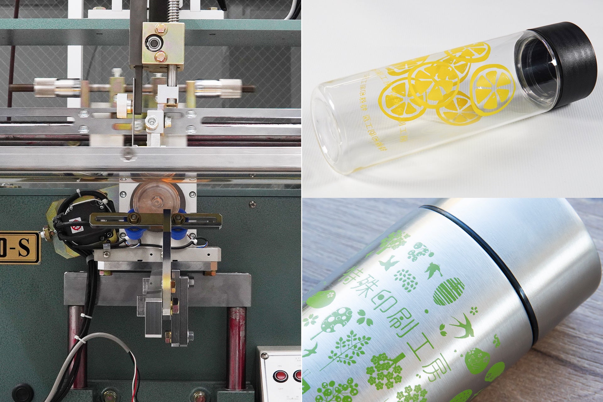 また、さまざまな商材にパッド印刷、シルク印刷、回転シルク印刷、UVインクジェット印刷などの特殊印刷加工した制作事例を展示し、お客様をお迎えいたします。
