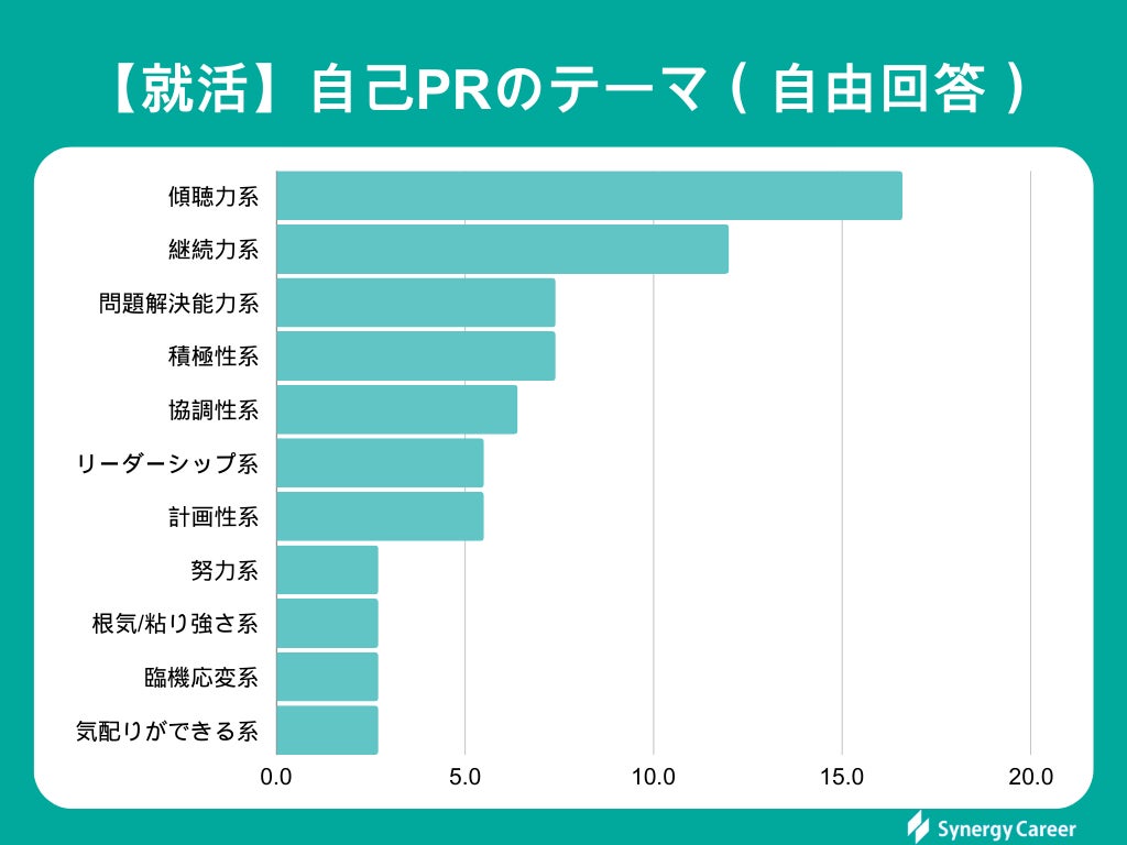 自己PRは「傾聴力」「継続力」など、「物事を取り組む姿勢」に関する内容が多い