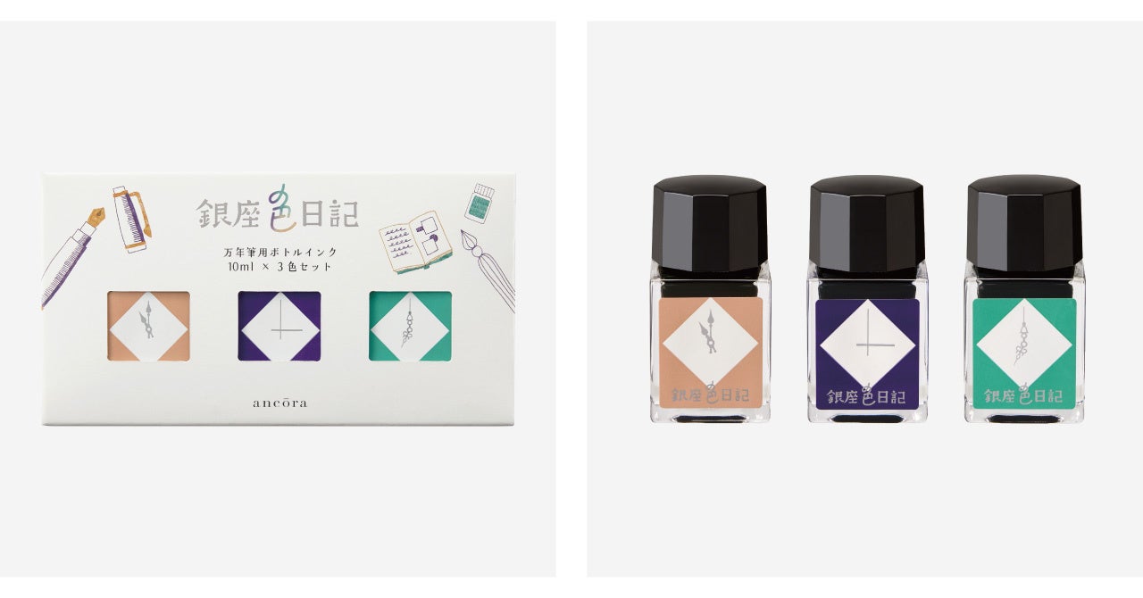 ancora(アンコーラ)オリジナル万年筆用ボトルインクセット「銀座色日記」を新発売!