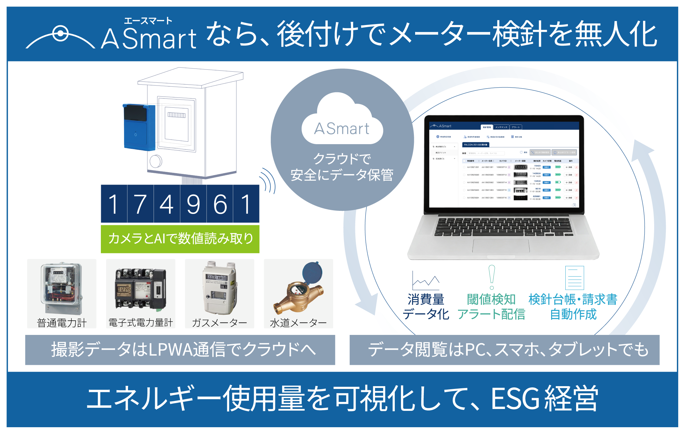 A Smart(エースマート)は、メーターの検針および点検業務の無人化で最大90%の業務負荷を削減する、スマートメーターに替わる選択肢です。