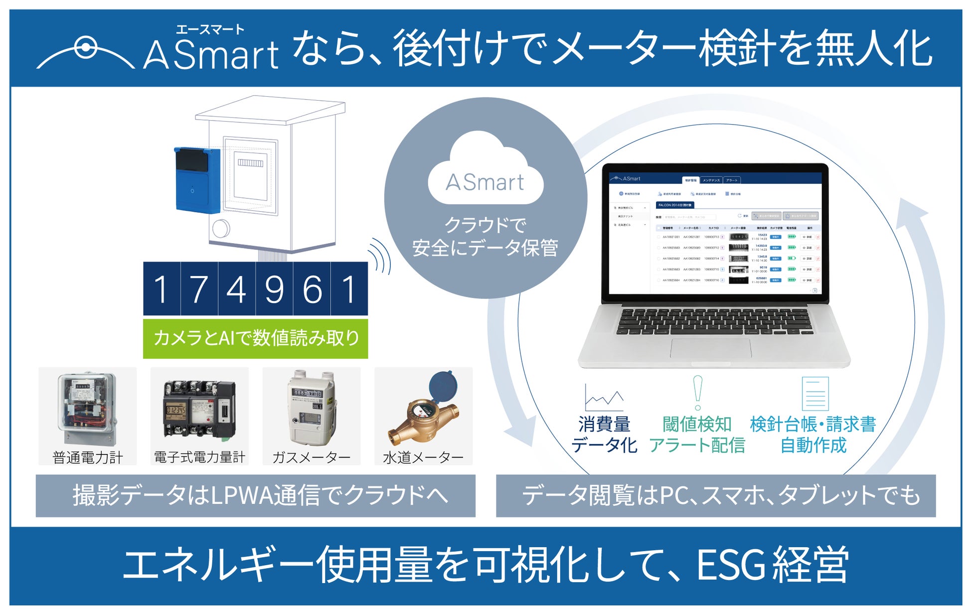 アシオット株式会社は、"ESG志向の後付け式メーター検針無人化サービスA Smart(エースマート)"を日本国内外でご提供しています。労働人口の減少が進む中、労働生産性の向上および組織の持続可能性に貢献します。