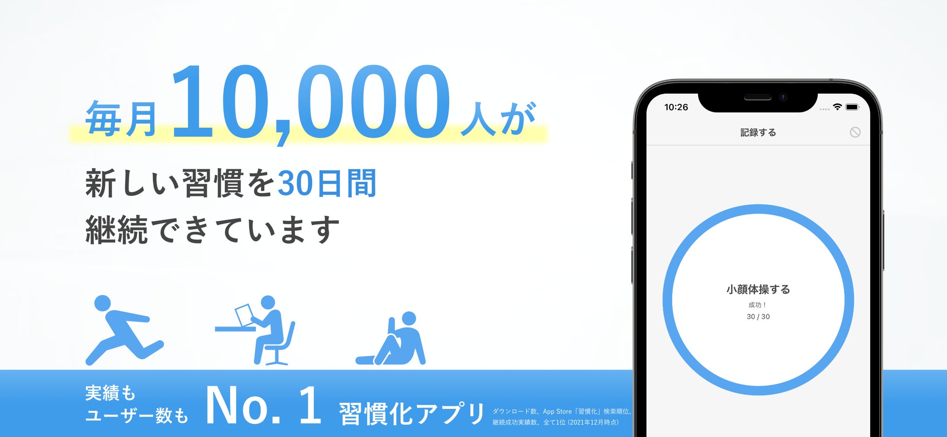 アプリ開発ベンチャーbondavi(ボンダヴィ)(本社:神奈川県、代表取締役:戸田大介)の習慣化アプリ「継続する技術」で、前年度に「本を読む」「筋トレをする」などの目標を30日間継続できた人数が10万人を超えました。