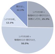 気候変動に関連する「戦略」の記載をみると、「シナリオ分析」を実施している旨を開示する企業は87.8%でした。シナリオ分析の深度については、物理的リスクと移行リスクの両方に言及している企業が75.8%にのぼった一方、気候関連の財務インパクトを具体的な数字を用いて開示している企業は25.3%と少数にとどまりました(図表5)。
