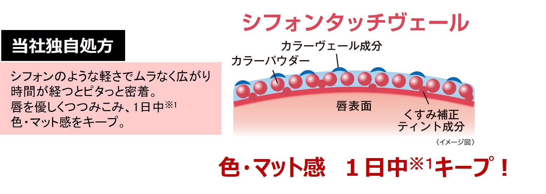 ■唇どけて密着!ふわり生感シフォンタッチヴェールで、つけたての色・マット感つづく