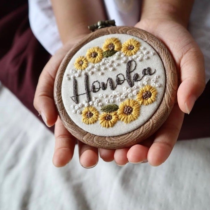 刺繍をしてあげた洋服を喜ぶ子供を見て、刺繍を取り入れた作品づくりをスタート。SNSを通じてオーダースタイやネームチャームの販売の他、対面販売のイベントに年2回ほど出展するなど活動の幅を広げている。