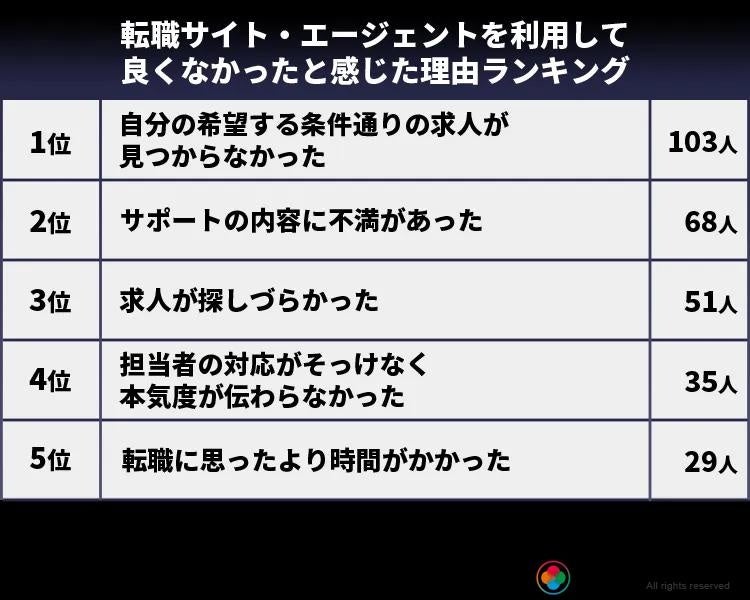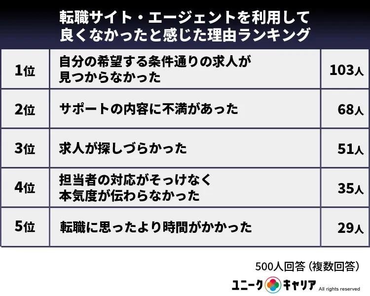 転職サイト・エージェントを利用して良くなかったと感じた理由ランキング