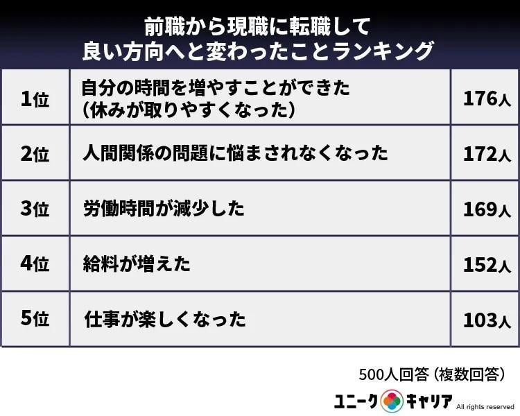転職することで、これらの不満が解消されるのだろうか。転職後に感じたことのアンケート結果を考察していく。