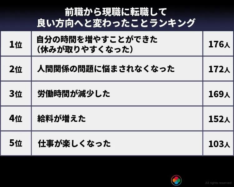 「人間関係の問題に悩まされなくなった」と回答した人は172人と、1位に次いで多かった。