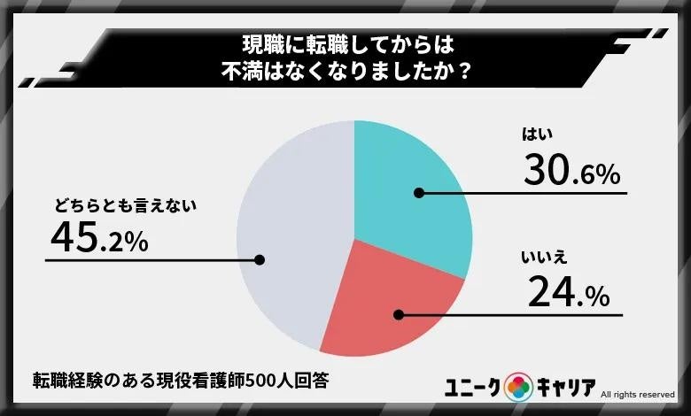 転職経験のある看護師500人へのアンケート調査で、転職して不満がなくなった人は約3割にとどまっていることがわかった。