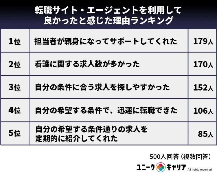 転職サイト・エージェントを利用して良かったと感じた理由ランキング
