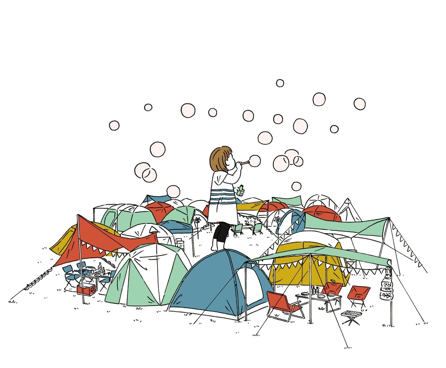 そんなキャンプを楽しむ時に心掛けたいメッセージをポップなイラストで表現した