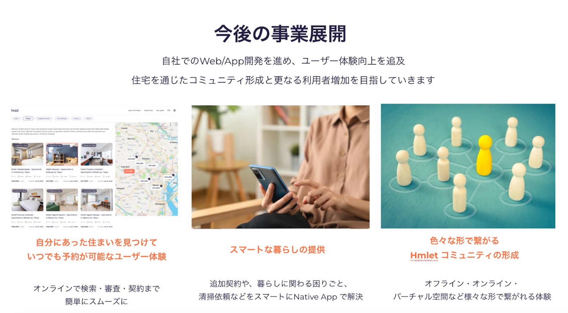オンラインで柔軟な契約が可能な、家具付きの住まいを提供するハムレットは、日本での住まいを探す外国籍の方々、駐在員、ノマドワーカーの皆さまに広く支持をいただいています。これからも、より快適でストレスのない住まい探しを実現するため、さらなる機能向上に努めてまいります。