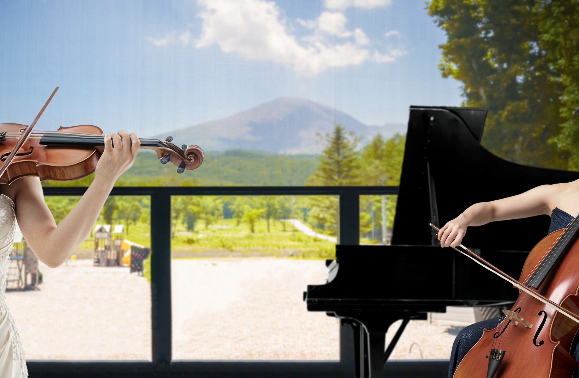 本コンサートでは、昨年に続き、幅広い音楽シーンの第一線で活躍するヴァイオリニストの荒井桃子氏をはじめ、ピアニストの上野山 英里氏、チェリストの島津 由美氏を迎えます。更にコントラバスに森田 晃平氏も加わり今年は四重奏に。荒井桃子氏は、本リゾートをイメージした楽曲「空山望」をリリースされたことでも知られ、コンサートでは誰もが知る「子犬のワルツ」などクラシックの名曲からオリジナル曲まで、多彩なジャンルの楽曲を披露します。