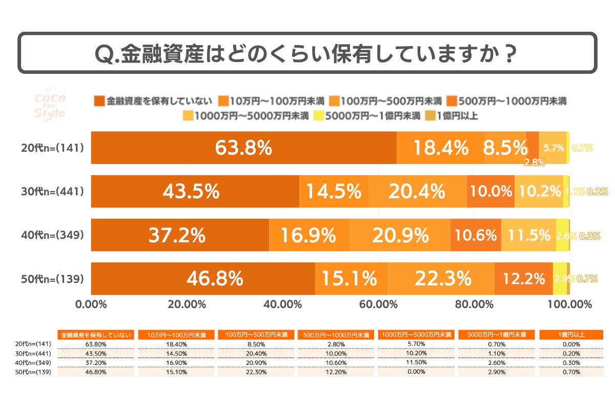 また、「金融資産を保有していない」と答えた人は41.7%で、半数近くの家庭が投資や資産運用をしていないことが明らかになりました。
