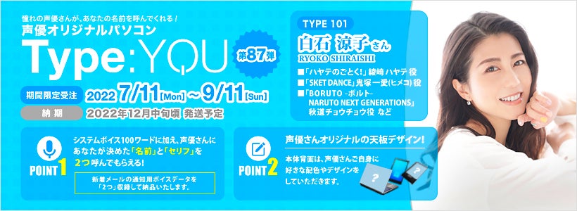 声優オリジナルパソコンに白石涼子さんが登場!【Type:YOU -タイプユー-】第87弾は7月11日よりスマッシュコアで受注開始!