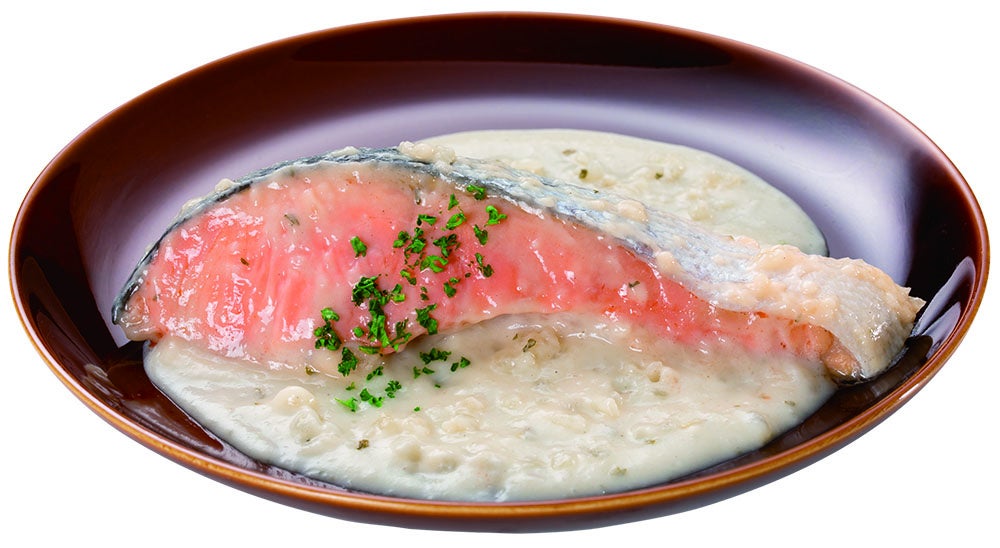 調理にかかる時間と手間をレンジを使うことで軽減し、生の魚の切り身を使うことで、食感と風味が良い一品が完成します。レンジ専⽤パウチでの加熱による「スチーム効果」と蒸らしで、お⿂がふっくらしっとりと仕上がります。