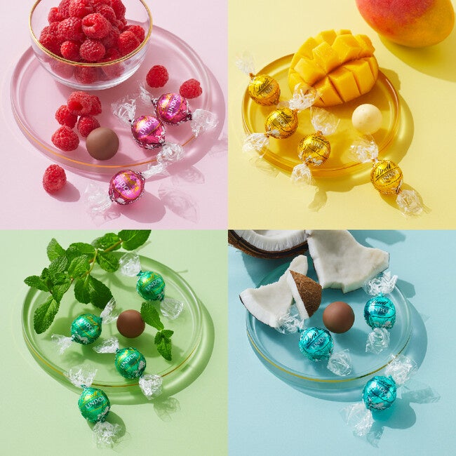 季節限定のリンドールに「ラズベリー&クリーム」「マンゴー&クリーム」「ココナッツ」「ミント」の夏らしい全4種類のフレーバーが登場。お好きな味をお好きなだけ量り売りでお求めいただける「PICK&MIX(ピック&ミックス)」、もしくはオンラインショップにてご購入いただけます。