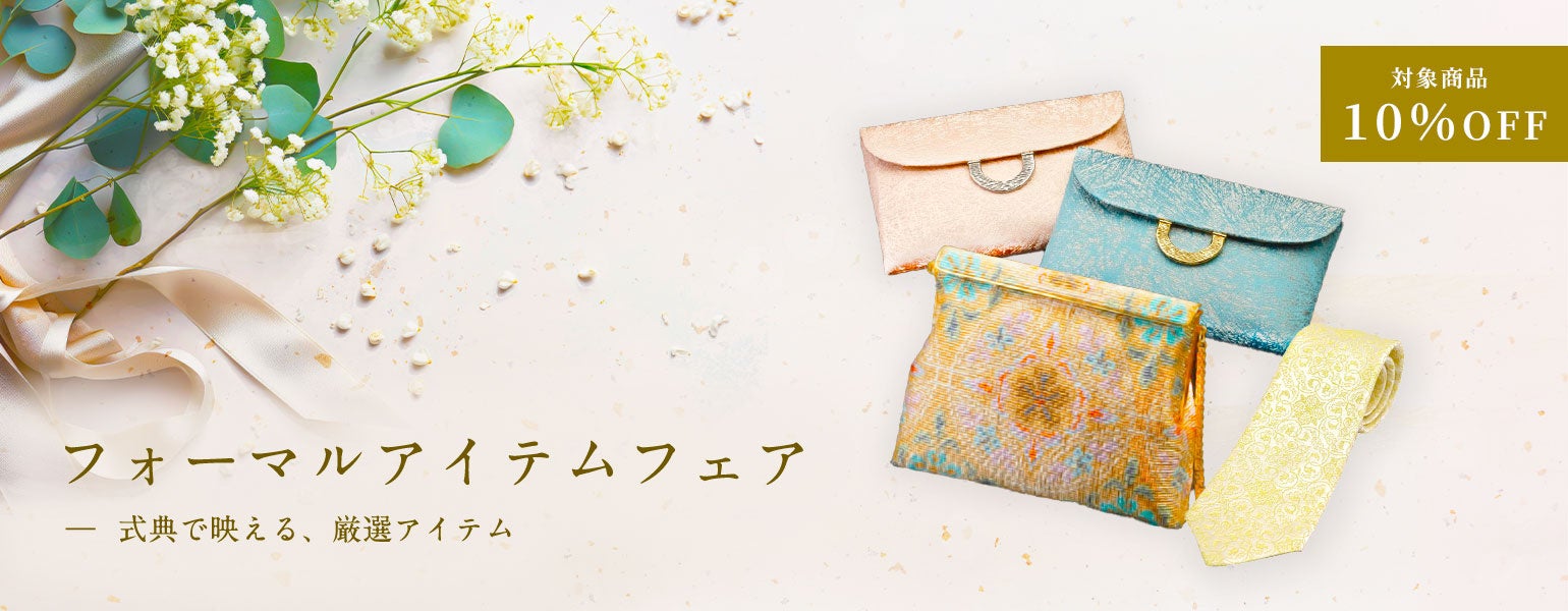 正装を求められる様々なシーンで安心してお使い頂ける、龍村美術織物のフォーマルアイテム。お得な「10%OFF」でお買い求め頂ける絶好の機会を、ぜひご利用下さい。
